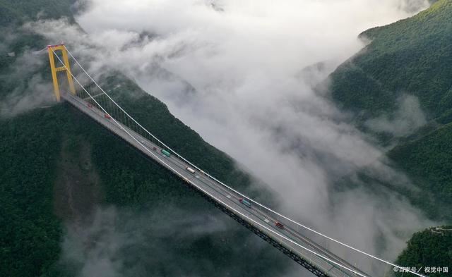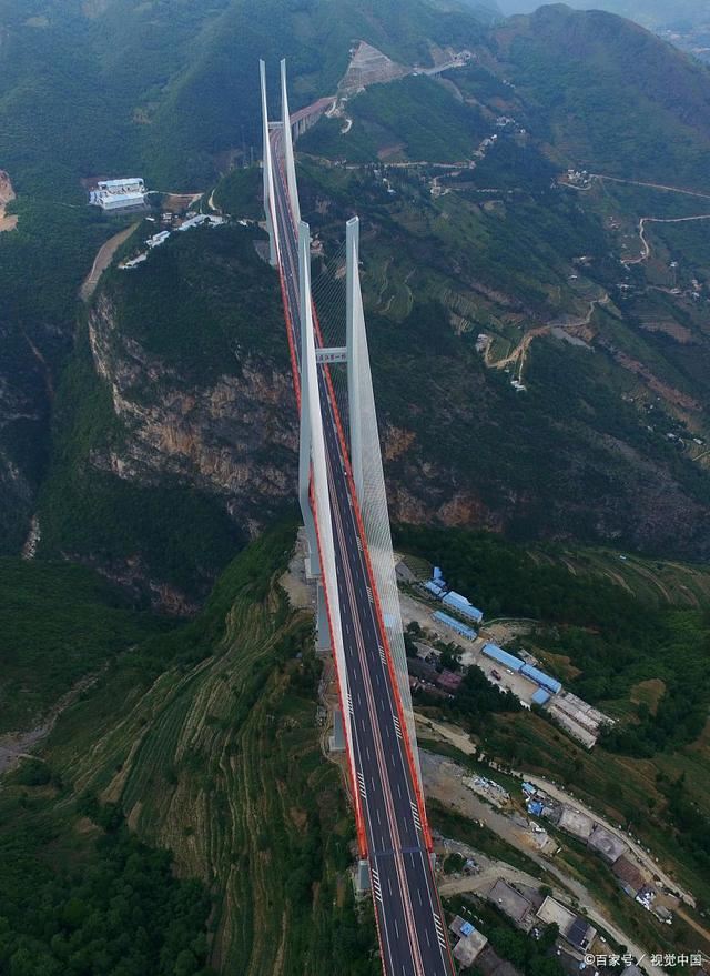 世界第一高橋 ,大橋東塔位于貴州省水城縣都格鎮(zhèn),西塔位于云南省宣威普立,全長1341.4米,主跨720米,橋塔高269米,橋面距離水面565米,此高度相當于差不多200層樓的高,超過了曾經(jīng)的世界第一高橋湖北四渡河特大橋(496米),2017年得世界排名第一。