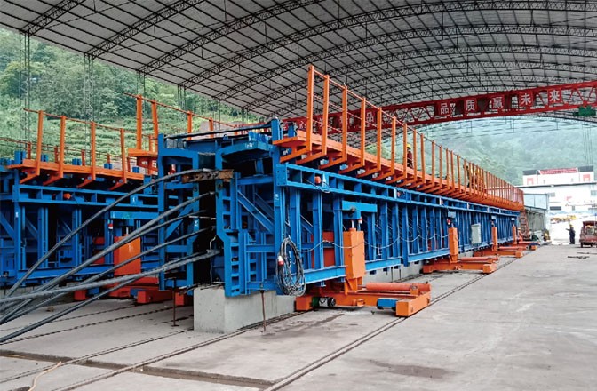 全套模板分外側(cè)模、端模和底模三部分。按側(cè)模與底模夾緊方式可分為:a)楔塊式;b)拉桿式。